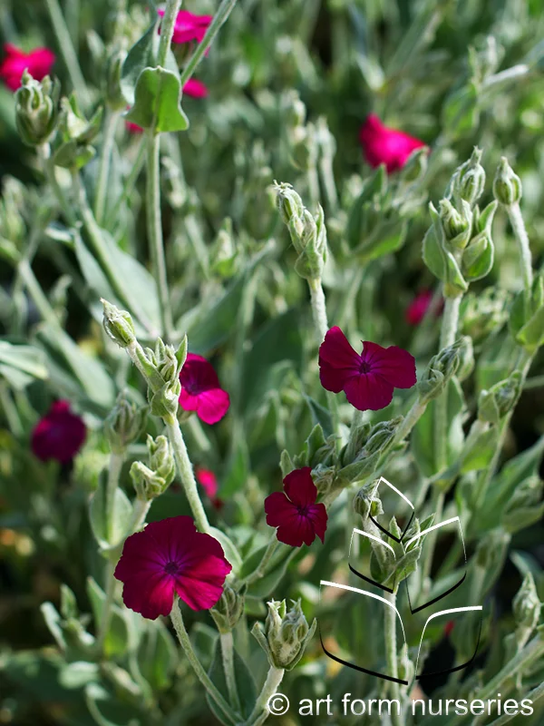 A lovely, old-fashioned plant with woolly gray foliage that handles a wide range of conditions. An extraordinary color, the magenta-pink flowers appear May - June. Self-seeds freely.